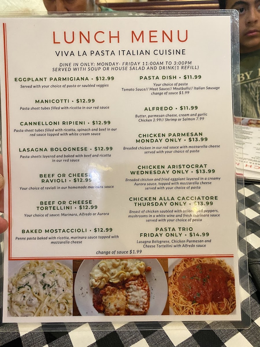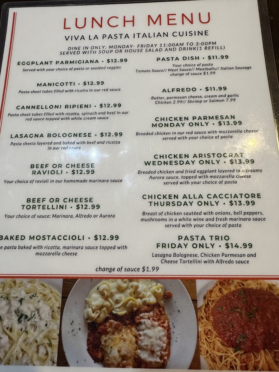 Welcome to Viva La Pasta Italian Cuisine, a hidden gem located in Lewisville, TX. This charming eatery brings authentic Italian flavors to life on every plate. Their menu is a delightful journey through Italy, with tantalizing appetizers like Mozzarella Marinara and Caprese, all priced affordably at $10.00.